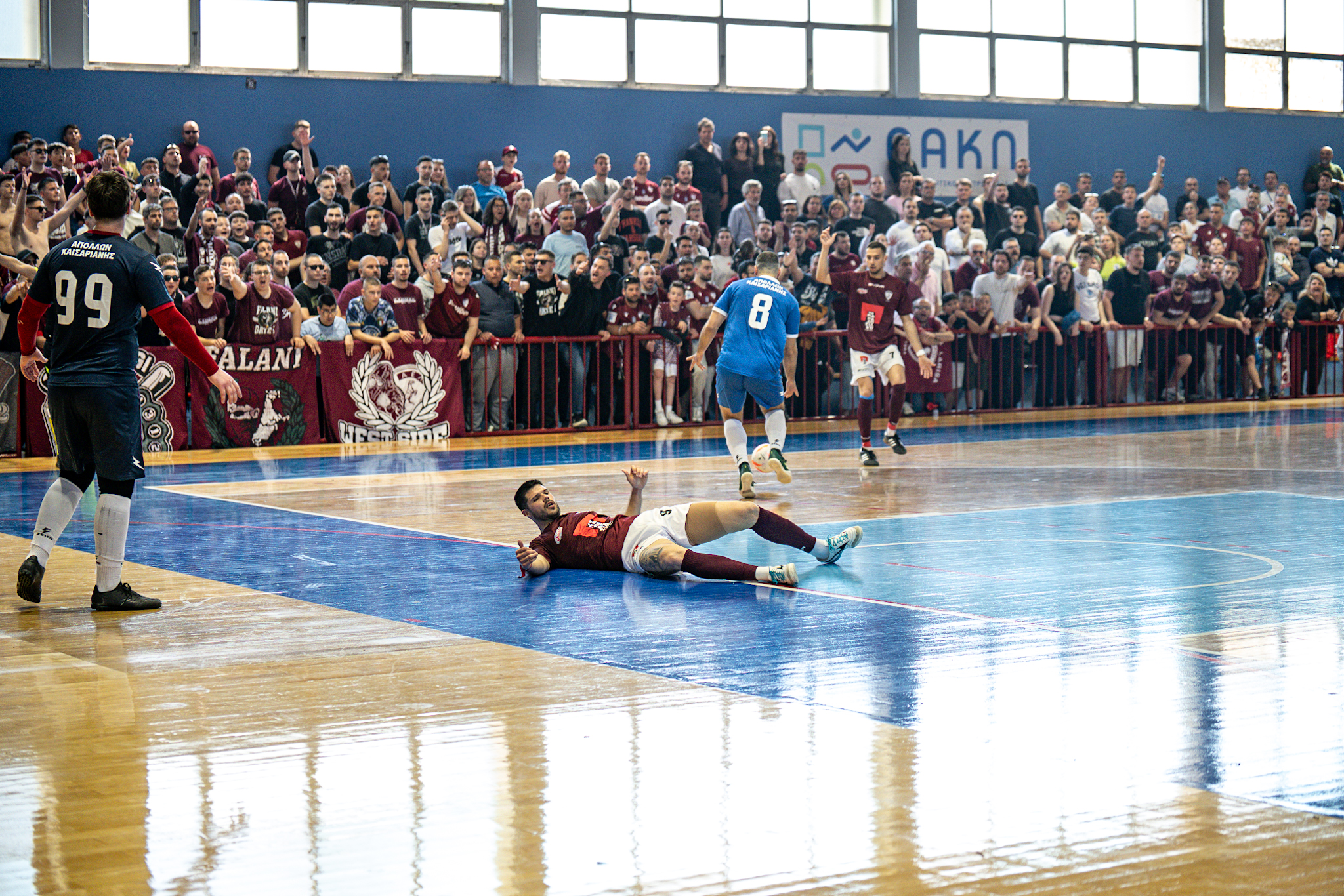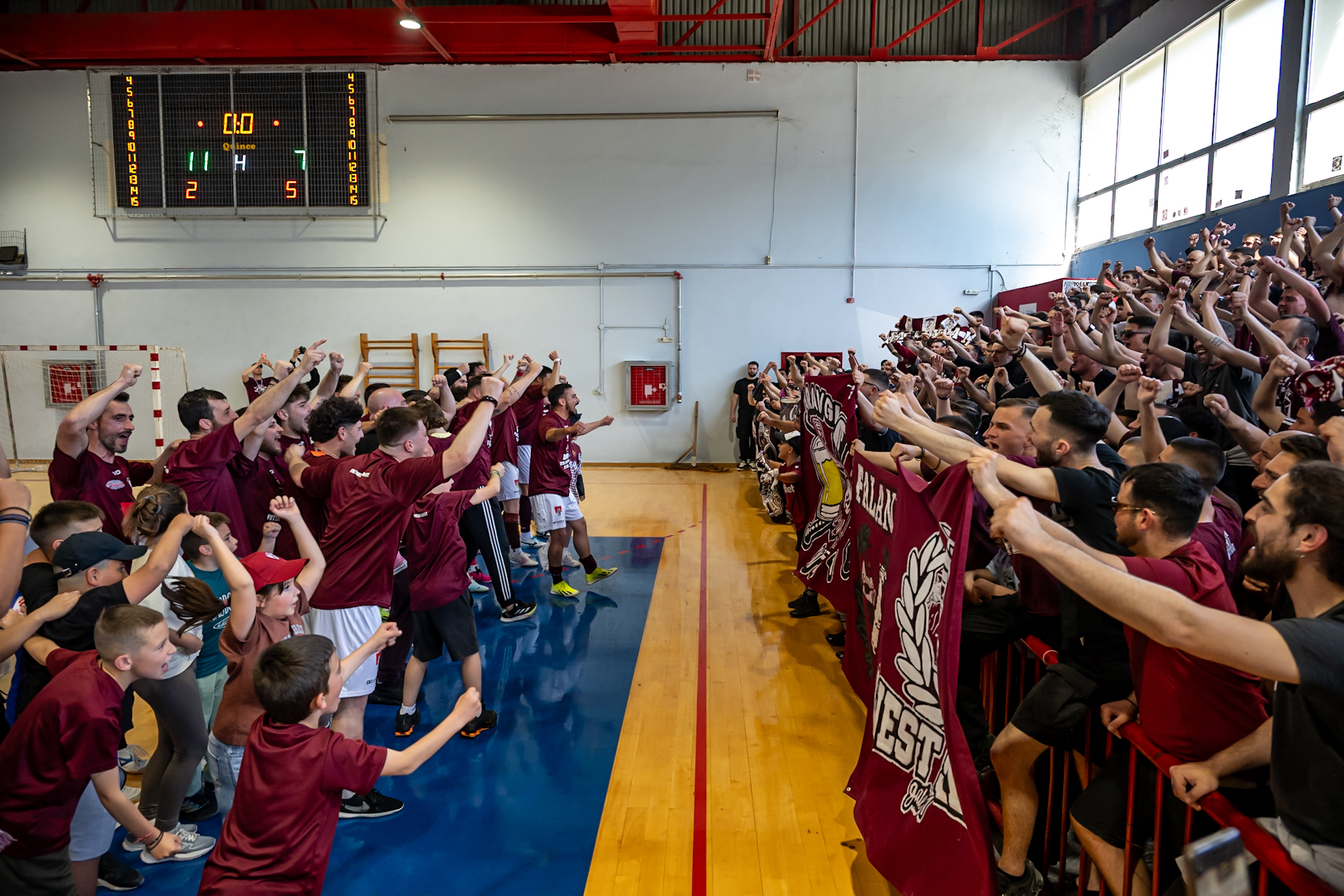 Η ΑΕΛ ήταν η πρώτη – χρονικά – ομάδα που χθες Κυριακή εξασφάλισε την άνοδό της στη Futsal Super League 2026-2027, αφού το παιχνίδι της προηγήθηκε εκείνου της Αμοργού με τον Μινώταυρο. Οι “βυσσινί” θα εκπροσωπήσουν την πόλη της Λάρισας και ολόκληρη τη Θεσσαλία στην Α’ Εθνική, με νίκη επί του αξιόμαχου Απόλλωνα Καισαριανής με 11-7, στο 3ο ματς της σειράς και μέσα σε ένα κατάμεστο κλειστό του Αγίου Θωμά. Το epssalas.gr παρουσιάζει το φωτορεπορτάζ του 3ου Ημιτελικού αγώνα.