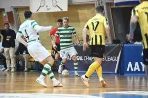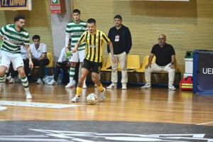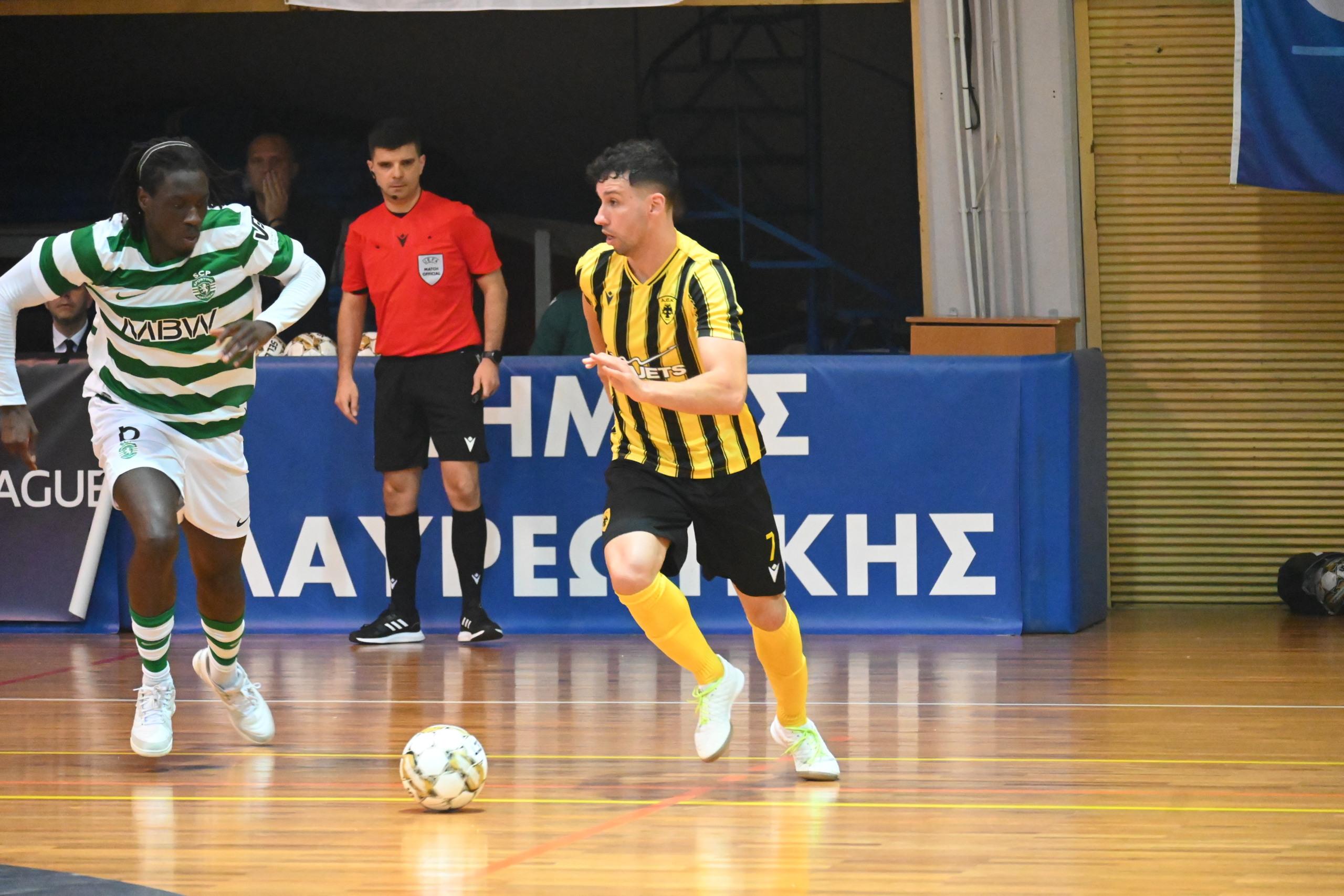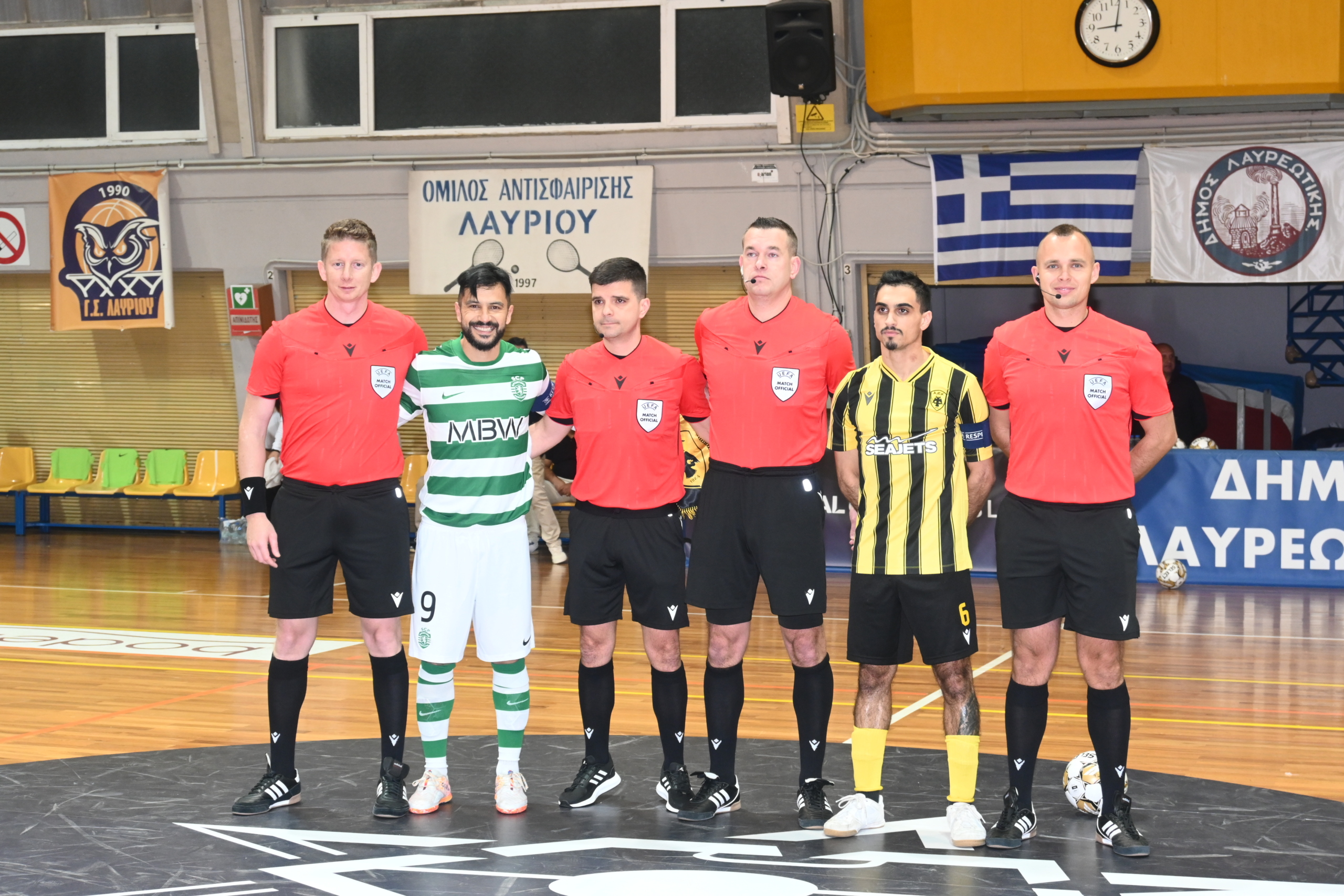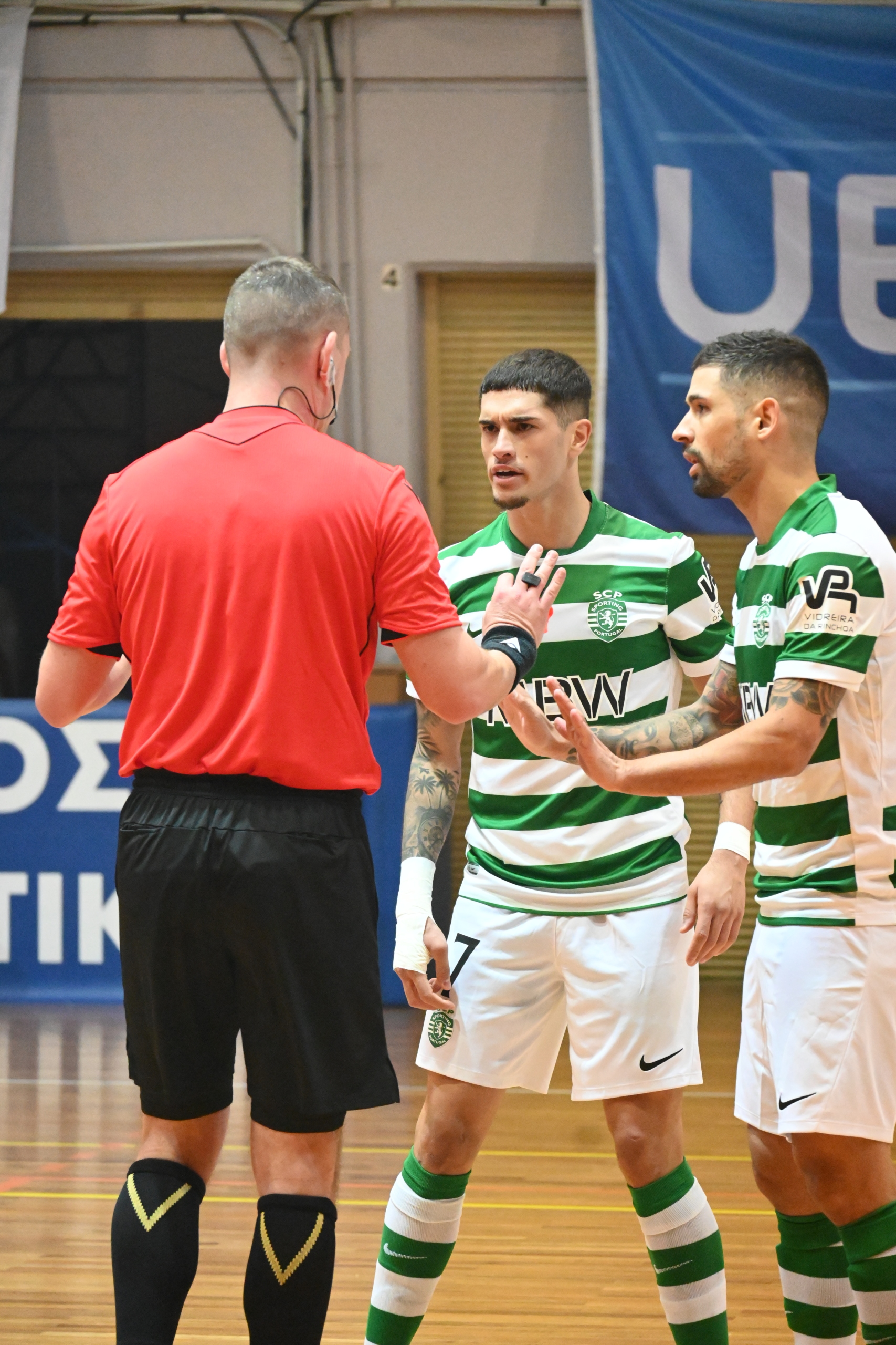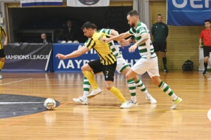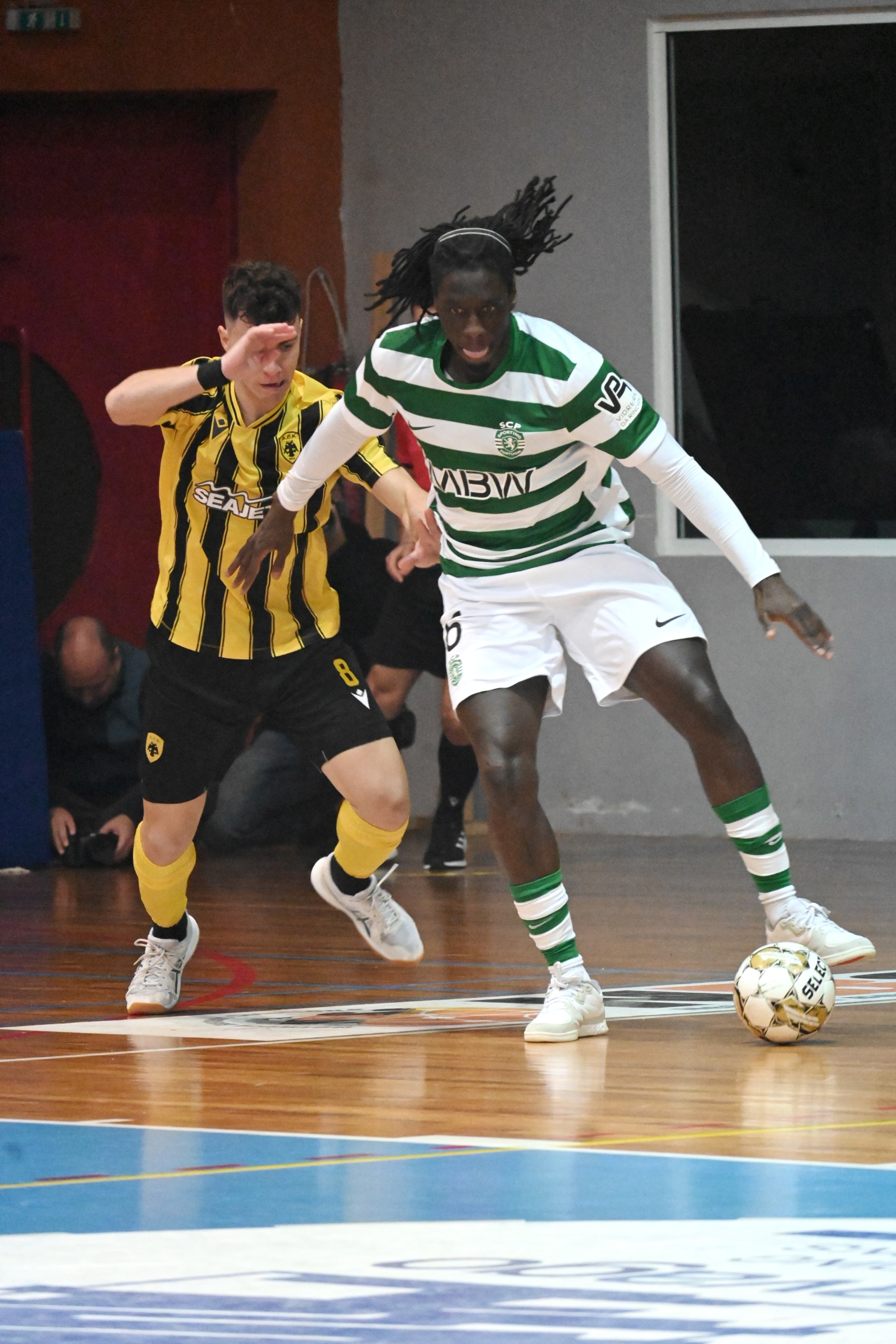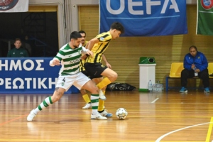 Το γνώριζαν όλοι ότι η Σπόρτινγκ είναι μία υπερομάδα στο ευρωπαϊκό futsal και ότι το εμπόδιο της ΑΕΚ στους “16” του UEFA Futsal Champions League ήταν πολύ ψηλό. Η Ένωση αντιμετώπισε τους Πορτογάλους στο κατάμεστο κλειστό του Λαυρίου, οι οποίοι επικράτησαν με 11-0, έχοντας στις τάξεις τους μερικούς από τους καλύτερους παίκτες στην ήπειρο. Ωστόσο, η ΑΕΚ προσπάθησε να ανακόψει αμυντικά τις προσπάθειες της Σπόρτινγκ και στο πρώτο μέρος δεν τα κατάφερε άσχημα με το σκορ να κλείνει στο 3-0, με γκολ των Ρότσα, Μερλίμ και Φελίπε.