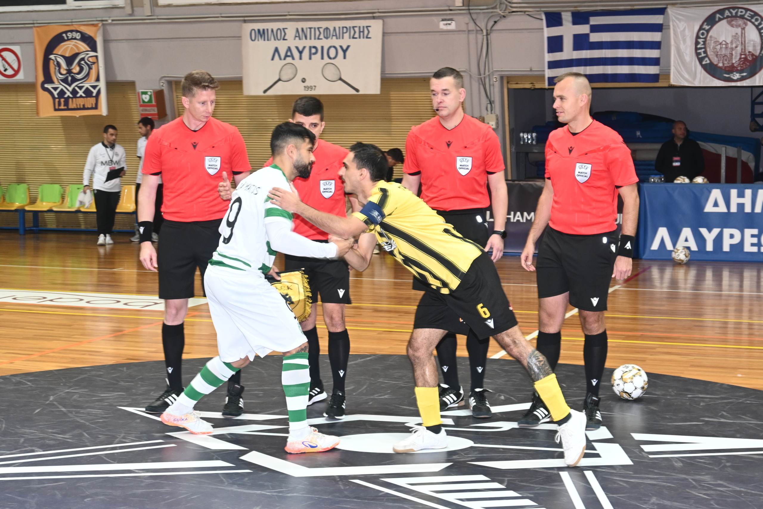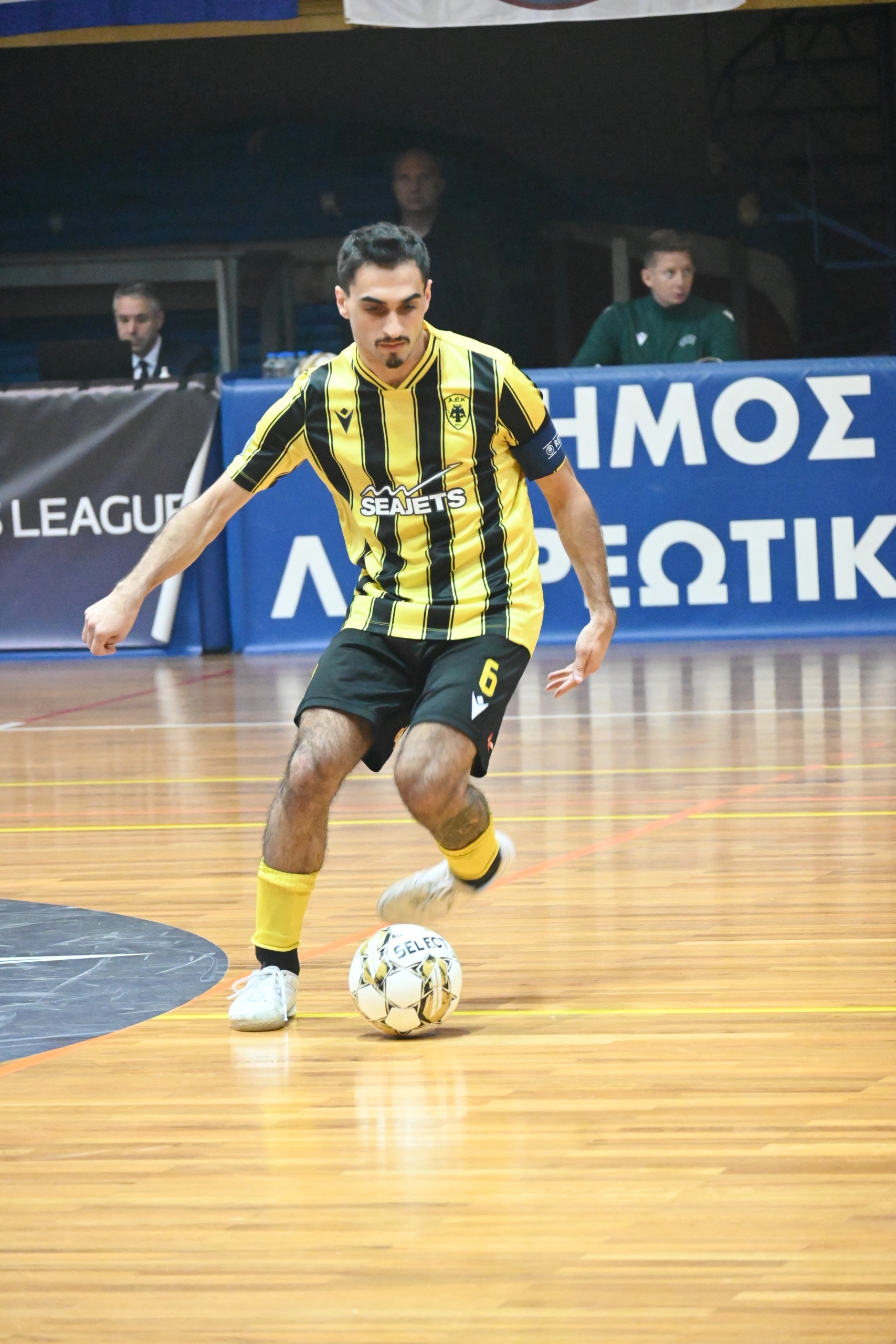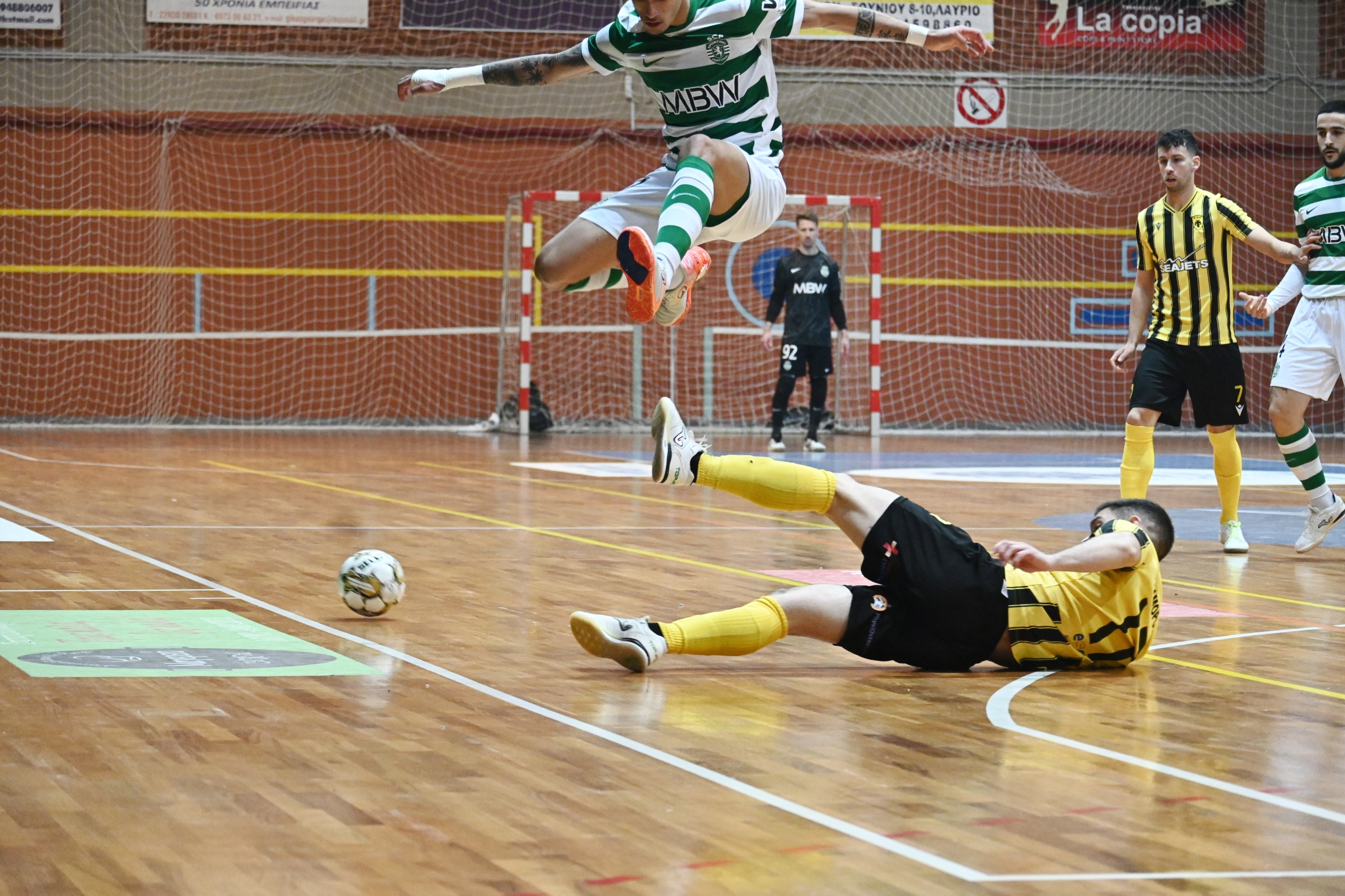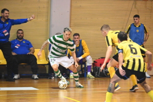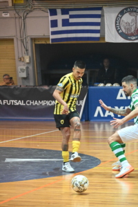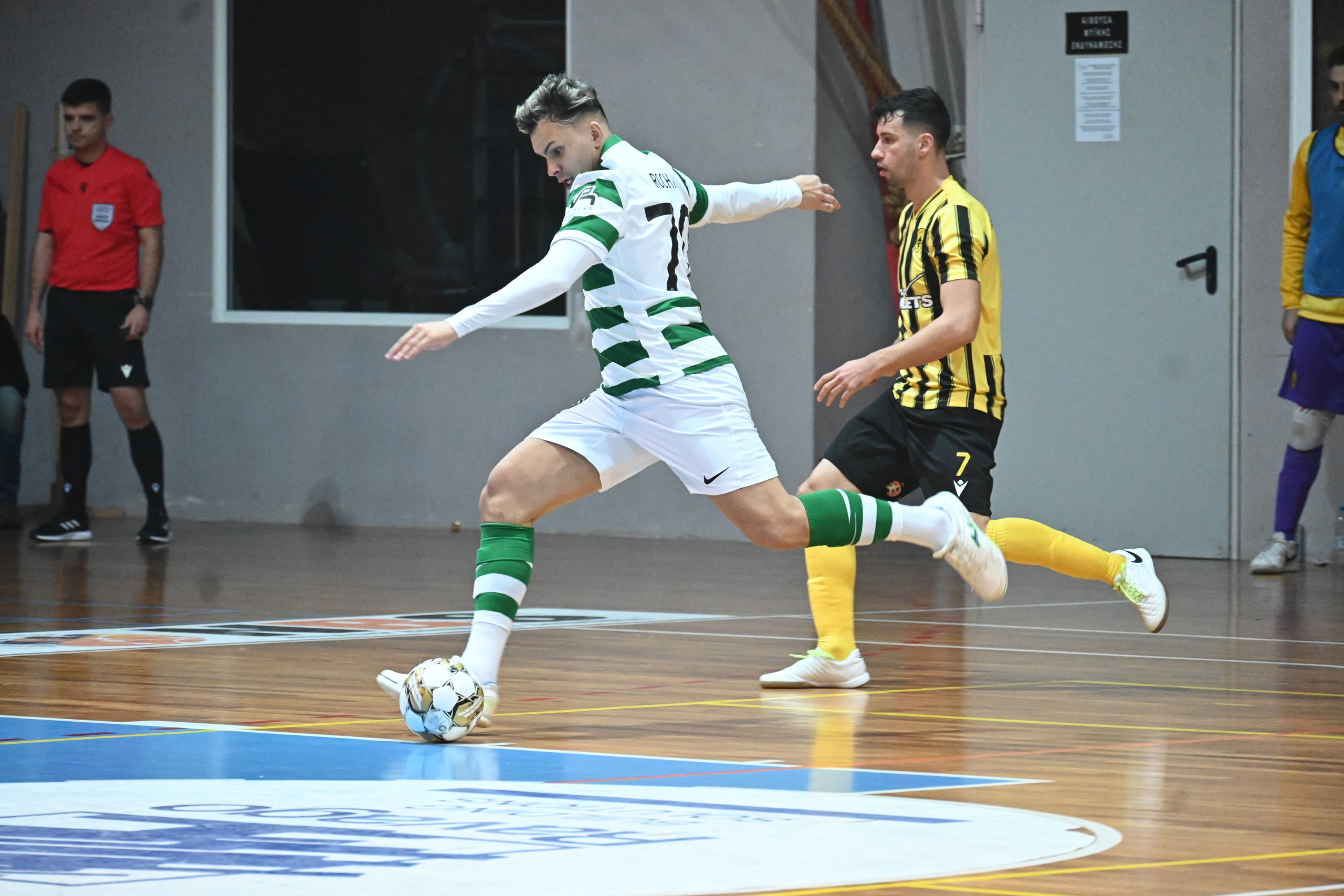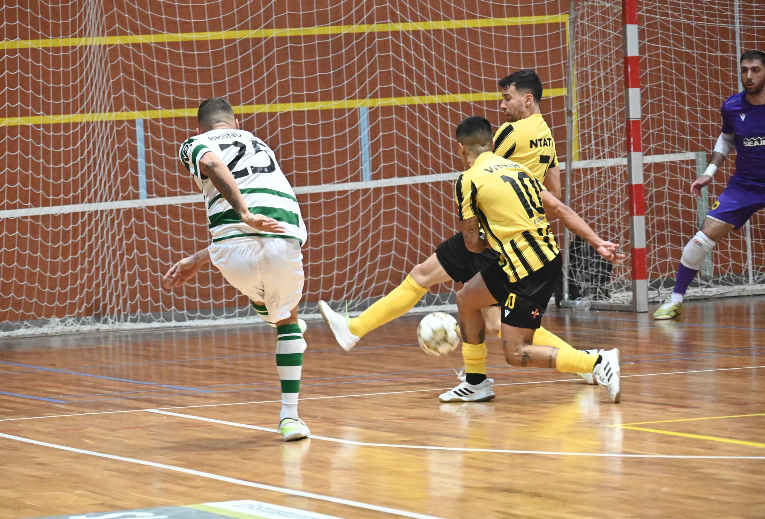 Το γνώριζαν όλοι ότι η Σπόρτινγκ είναι μία υπερομάδα στο ευρωπαϊκό futsal και ότι το εμπόδιο της ΑΕΚ στους “16” του UEFA Futsal Champions League ήταν πολύ ψηλό. Η Ένωση αντιμετώπισε τους Πορτογάλους στο κατάμεστο κλειστό του Λαυρίου, οι οποίοι επικράτησαν με 11-0, έχοντας στις τάξεις τους μερικούς από τους καλύτερους παίκτες στην ήπειρο. Ωστόσο, η ΑΕΚ προσπάθησε να ανακόψει αμυντικά τις προσπάθειες της Σπόρτινγκ και στο πρώτο μέρος δεν τα κατάφερε άσχημα με το σκορ να κλείνει στο 3-0, με γκολ των Ρότσα, Μερλίμ και Φελίπε.
