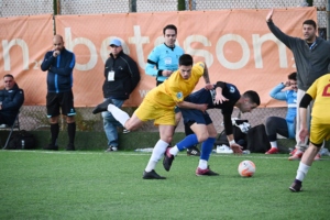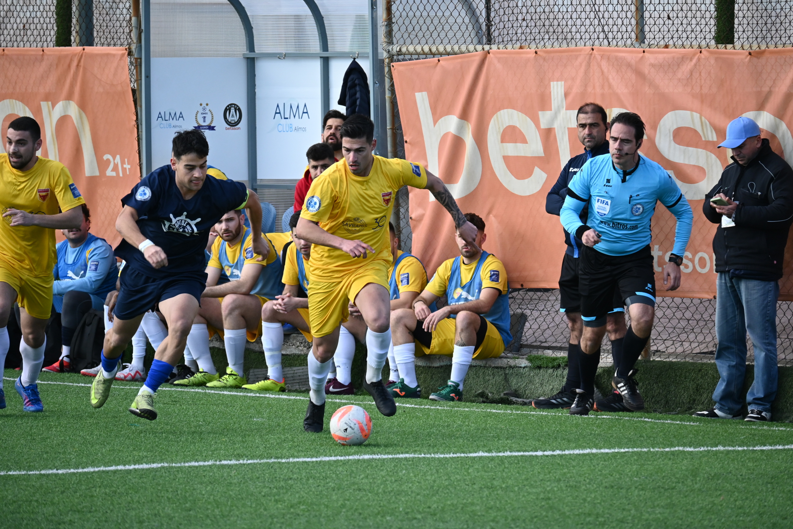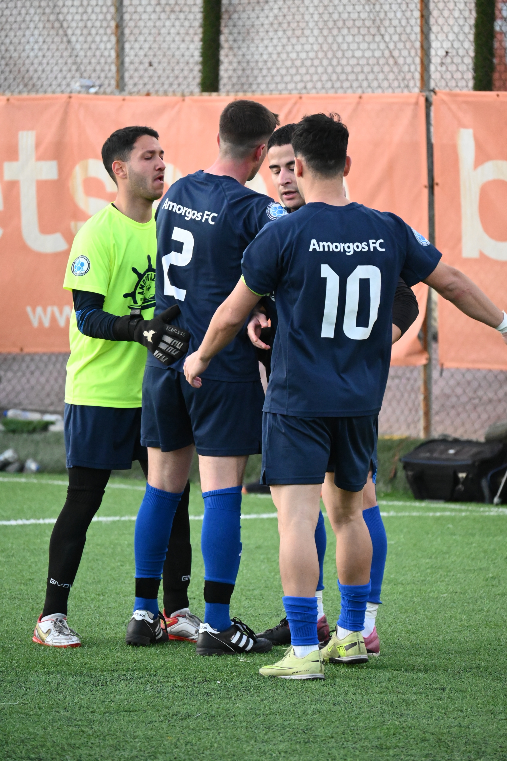 Κάτι παρόμοιο έκανε η Αμοργός, που επικράτησε με 5-4 στην παράταση του Μινώταυρου, σε ένα πολύ δυνατό και γεμάτο συγκινήσεις παιχνίδι, με πρωταγωνιστή τον Παρασκευά Νομικό που σκόραρε τέσσερα γκολ, καθώς και το νικητήριο της παράτασης. Ο Βαγγέλης Αυλωνίτης άνοιξε το σκορ για τους “ταύρους” στο 7′, ο Νομικός ισοφάρισε στο 27′, αλλά ο Χίσο στο επόμενο λεπτό έκανε το 2-1 για τους φιλοξενούμενους. Στο 30′ με αυτογκόλ ο Παναγιώτης Νομικός έδωσε προβάδισμα δύο τερμάτων στον Μινώταυρο. Στο 35′ μείωσε η Αμοργός με τον Ελευθερίου και στο 37′ ο Νομικός έφερε το ματς στα ίσια.