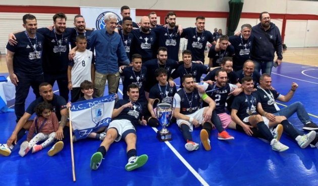 Το έκτο πρωτάθλημα της ιστορίας του και τρίτο συνεχόμενο πανηγύρισε ο Δούκας στη Stoiximan Futsal Super League. Η ομάδα του Γιάννη Μοστριού (ήταν τιμωρημένος) έκανε το 3-0 στις νίκες απέναντι στην ΑΕΚ το βράδυ του Σαββάτου και σήκωσε το βαρύτιμο τρόπαιο στο κλειστό του Κορυδαλλού. Ένα πρωτάθλημα που ήρθε αήττητο, αφού τόσο στην κανονική διάρκεια όσο και στα playoffs οι μπλε δεν έχασαν ούτε μια φορά.