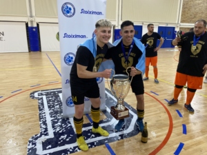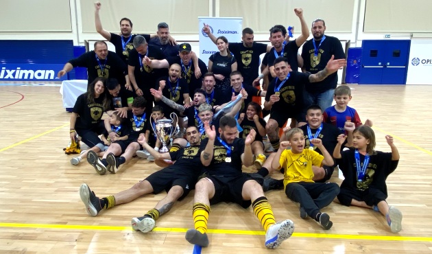 Η αναμέτρηση ήταν αμφίρροπη, με τον Δούκα να κάνει το 1-0 με τον Σεΐτι στο 3′, δείχνοντας ότι θα πολεμήσει μέχρι τέλους για να κάνει το 2-2 στους τελικούς. Ο Πάνου, ωστόσο, ισοφάρισε στο 8′ σε 1-1, που ήταν και το σκορ του ημιχρόνου. Στο 27′ ο Μπιελ έδωσε ξανά το προβάδισμα στους “μπλε” του Γιάννη Μοστριού, σε ένα σημείο του αγώνα που οι γηπεδούχοι φαίνονταν να έχουν τον έλεγχο. Όμως ο Τροβάτο στο 29′ και ο Φίτο στο 31′ έκαναν τη μεγάλη ανατροπή για τους “κιτρινόμαυρους” του Άγγελου Εμμανουηλίδη, οι οποίοι κράτησαν μέχρι τέλους τη νίκη, παρά το ότι ο Δούκας στα τελευταία λεπτά πίεσε και με 5ο παίκτη, δίνοντας την ευκαιρία στον αρχηγό Αντώνη Μάνο, να σηκώσει το βαρύτιμο έπαθλο.